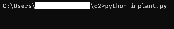 And now to launch the 'implant' on the infected computer (currently my Windows PC):