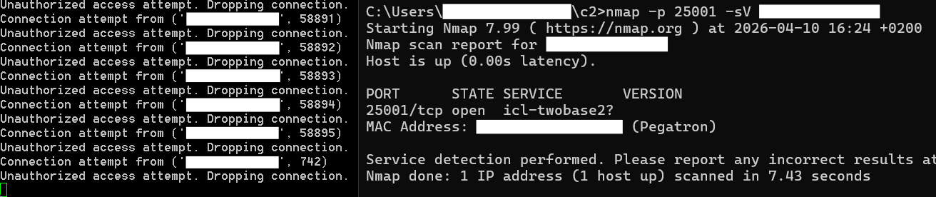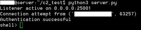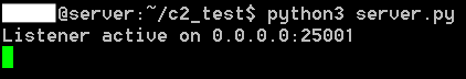 Now when we launch this script on our 'C2' server, it will start listening on port 25001,